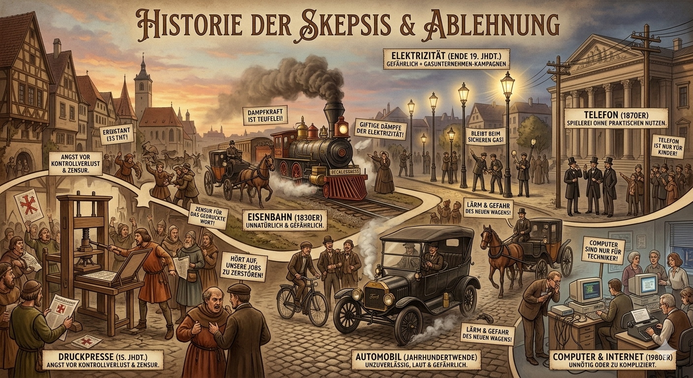 Wie so häufig in der Geschichte gibt es auch dieses Mal bei einer neuen disruptiven Technologie bei ziemlich vielen Menschen Ablehnung oder sie verdrängen das wichtige Thema. So ein Verhalten könnte sich bald als fataler Irrtum erweisen.